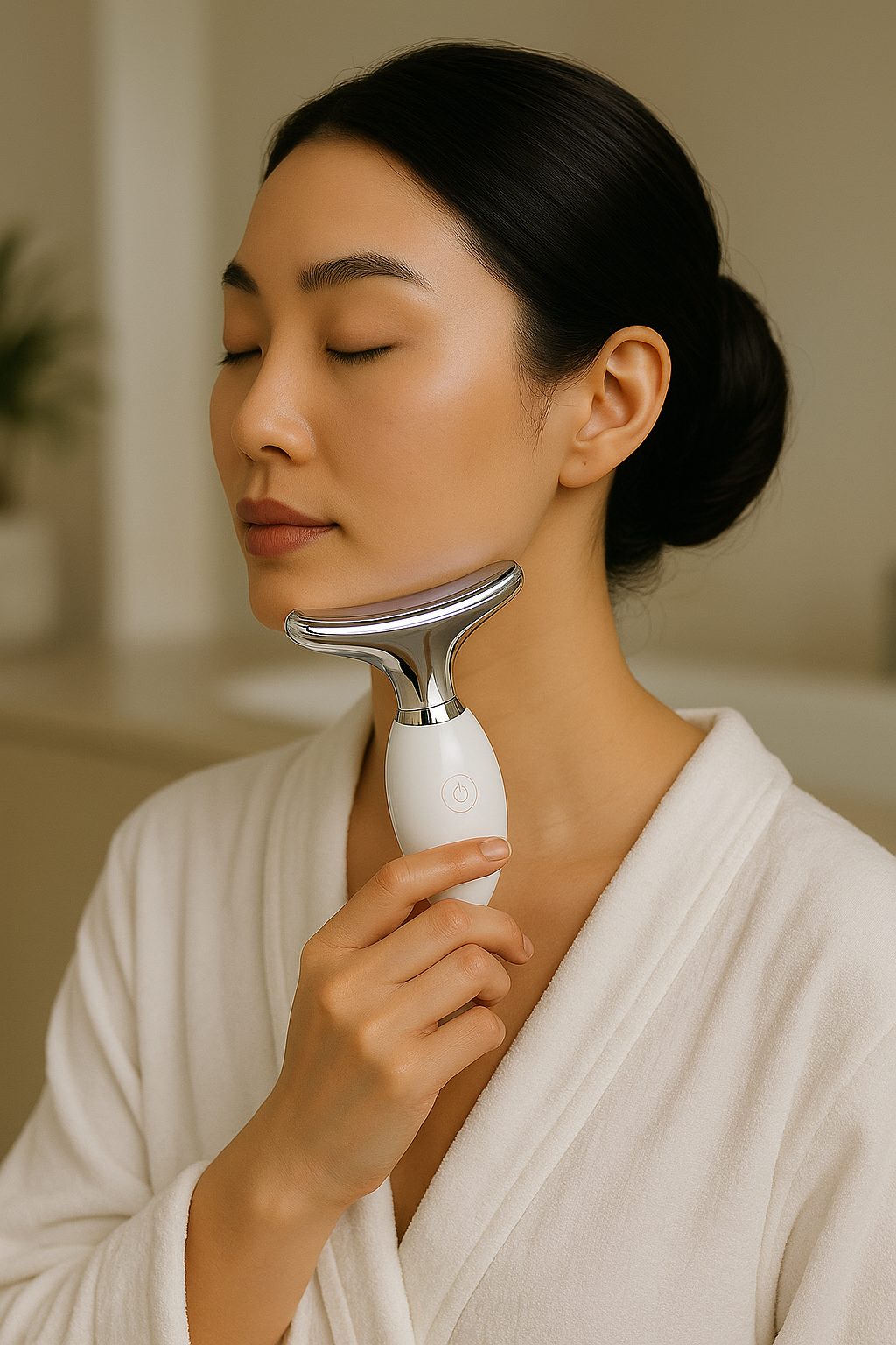 Les micro-vibrations activent la peau en douceur, sans irritation. Elles améliorent la circulation et soutiennent l’efficacité des soins.